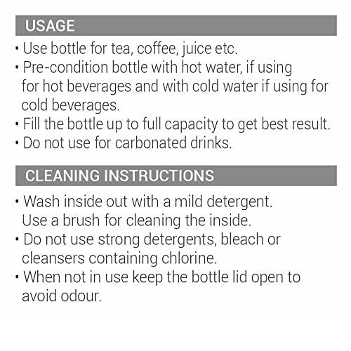 Double walled Vacuum insulated technology keeps beverages hot or cold for 24 hours, Inner copper coating for better temperature retention. A unique bottle that makes pouring completely hassle-free and spill-free.