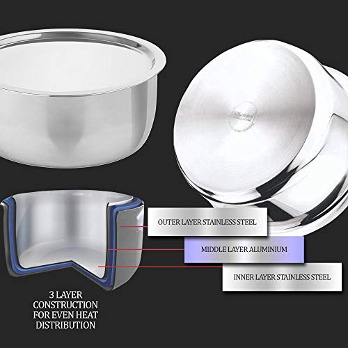 Triply means 3 layers of metal bounded together : 1st layer – Food-grade 18/8 stainless steel on one side (for safe and healthy cooking), designed for longevity